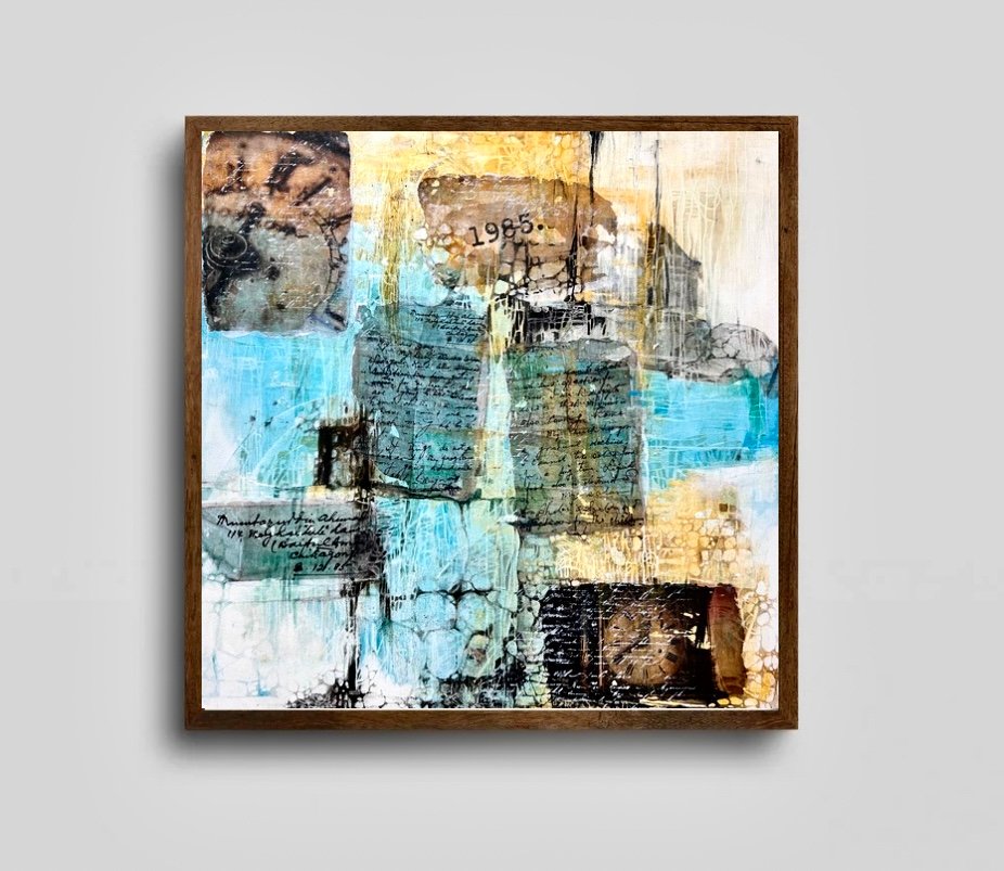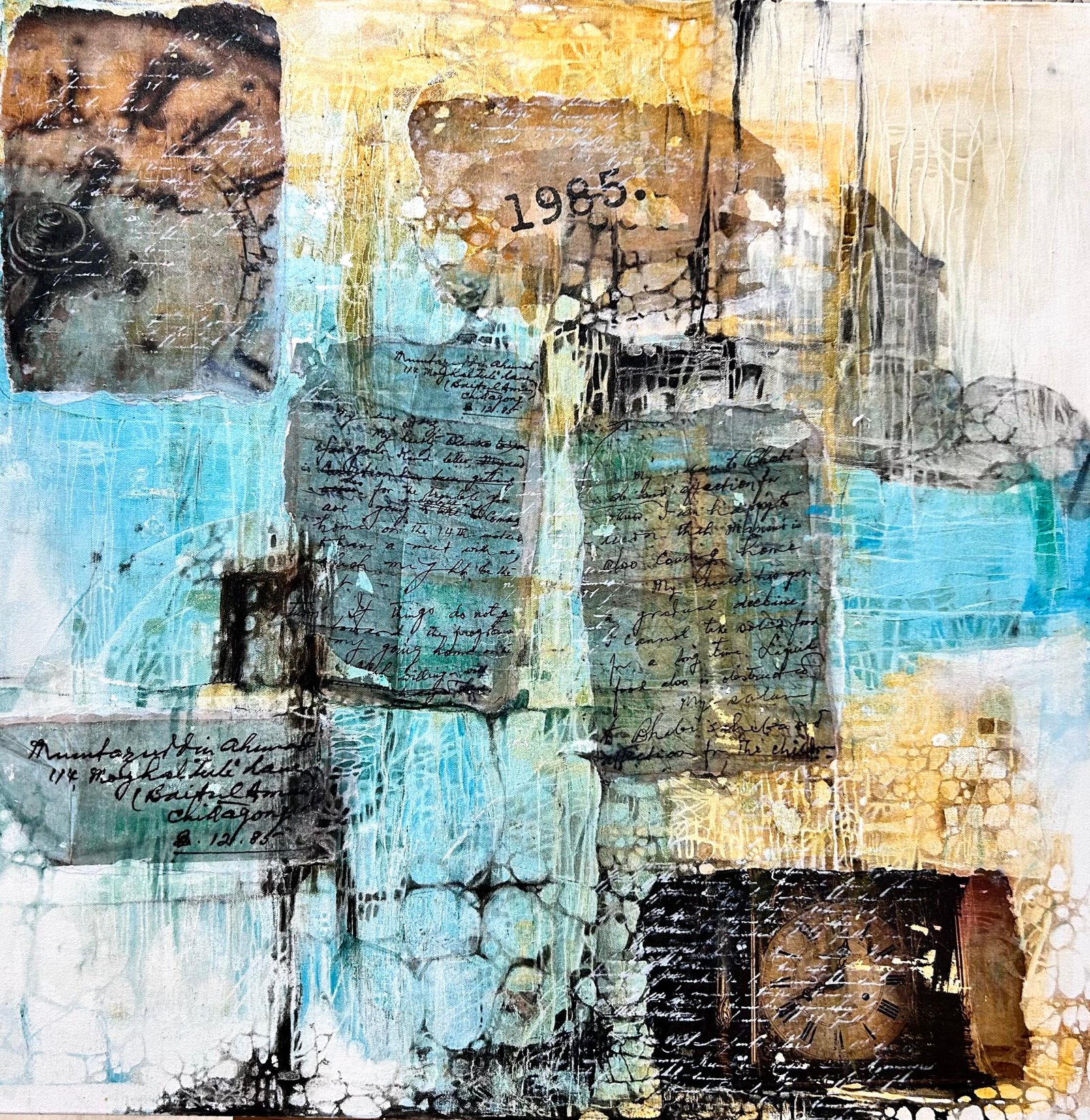Between The Clocks is an original mixed media on canvas artwork that reflects the quiet spaces between moments—where time slows, pauses, and becomes felt rather than measured. The painting explores the idea of existing between past and future, capturing a sense of stillness within movement.